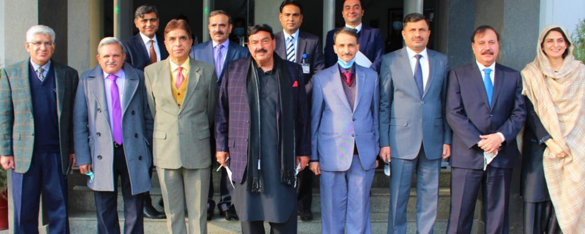 Islamabad, the 21st December, 2020. Federal Minister for Interior, Sheikh Rashid Ahmed visited NACTA headquarters here today. Honorable Minister was warmly welcomed by National Coordinator, NACTA Mr. Mehr Khaliq Dad Lak and other senior officers of NACTA. The Minister was briefed on NACTA functions, its organizational structure and its mandated role as per the NACTA Act.2013.